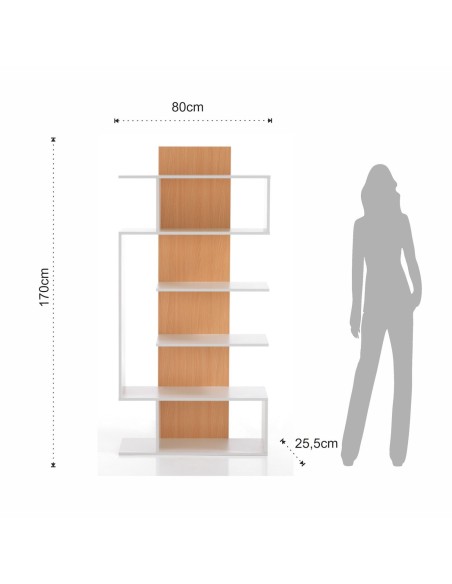 Con i suoi numerosi scaffali, offre ampio spazio per libri, riviste, piante, cornici e complementi decorativi, consentendo di mantenere l’ordine con stile. Grazie alla sua struttura slanciata e alla profondità contenuta (25,5 cm), si adatta perfettamente anche ad ambienti di piccole dimensioni, ottimizzando lo spazio senza creare ingombro.