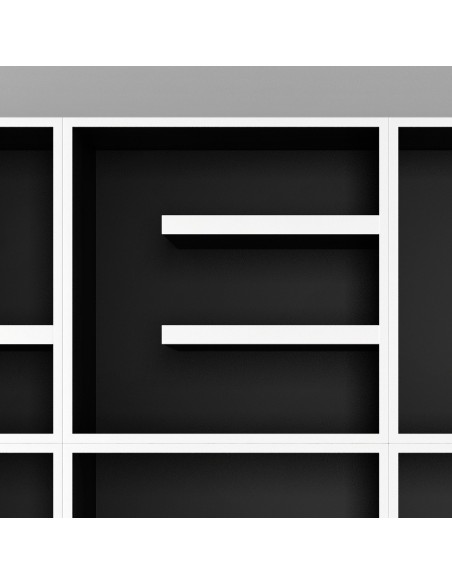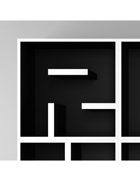Realizzata in legno laminato di alta qualità, un materiale robusto e duraturo, presenta interni neri opachi ed esterni bianchi lucidi, creando un contrasto elegante e contemporaneo. 📏 Dimensioni singolo modulo: 51 x 51 x 31 cm. 📐 Dimensioni totali: L204 x H102 x P31 cm. Un complemento d’arredo 100% Made in Italy, che unisce design, funzionalità e libertà compositiva.