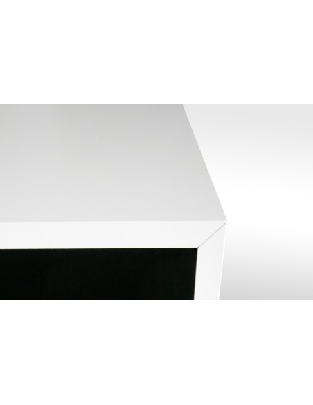 Ogni modulo è realizzato in legno laminato di alta qualità, resistente e durevole, con interni neri opachi e esterni bianchi lucidi, per un raffinato contrasto visivo.