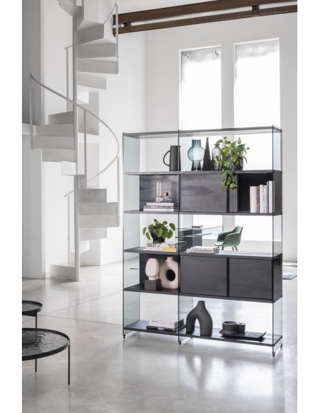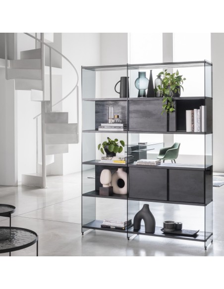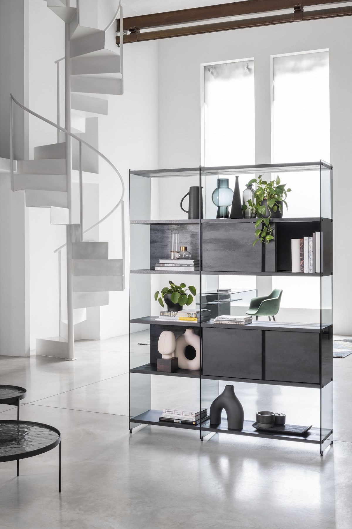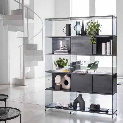 La libreria autoportante Tibor-Comp23 è la soluzione perfetta per separare gli ambienti con stile e funzionalità. Grazie al suo design moderno e raffinato, arreda con eleganza sia il soggiorno di casa che lo studio professionale, diventando un elemento d’arredo protagonista dello spazio. Realizzata in laminato ecologico soft-touch da 25 mm nella finitura Nero Carbone e completata da fianchi in vetro temperato fumé da 10 mm, unisce solidità, luminosità e leggerezza visiva.