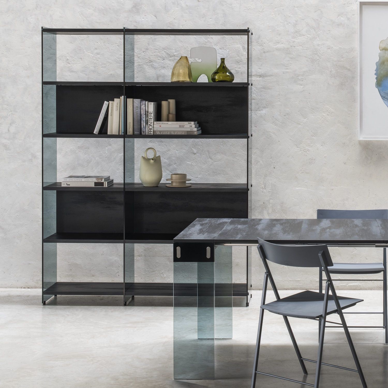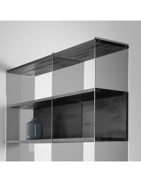 La libreria divisoria Tibor-Comp24 è la soluzione perfetta per separare ambienti con stile e funzionalità. Grazie al suo design moderno ed elegante, arreda con personalità il soggiorno di casa, lo studio professionale o l’ufficio, creando spazi distinti ma armoniosi. Realizzata in laminato ecologico soft-touch da 25 mm nella sofisticata finitura Nero Carbone, con fianchi in vetro temperato fumé da 10 mm, unisce solidità, luminosità e leggerezza visiva.