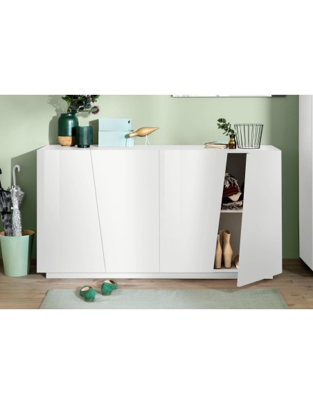 Annabel 160 White è una credenza moderna dal design pulito e raffinato, ideale per arredare con eleganza la zona giorno o la cucina. Dotata di quattro ante capienti, offre ampio spazio per riporre stoviglie, accessori o oggetti decorativi, mantenendo l’ambiente sempre ordinato.
