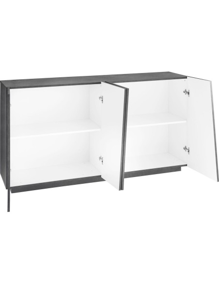 Annabel 160 Slate è una madia moderna dal carattere elegante e contemporaneo, perfetta per arricchire il soggiorno o la zona pranzo con stile. La struttura in legno MDF di alta qualità, rifinita nella suggestiva tonalità Ardesia, dona un tocco sofisticato e di tendenza a qualsiasi ambiente. Dotata di quattro ante capienti, offre ampio spazio per riporre piatti, bicchieri e oggetti, mantenendo l’ordine con discrezione.
