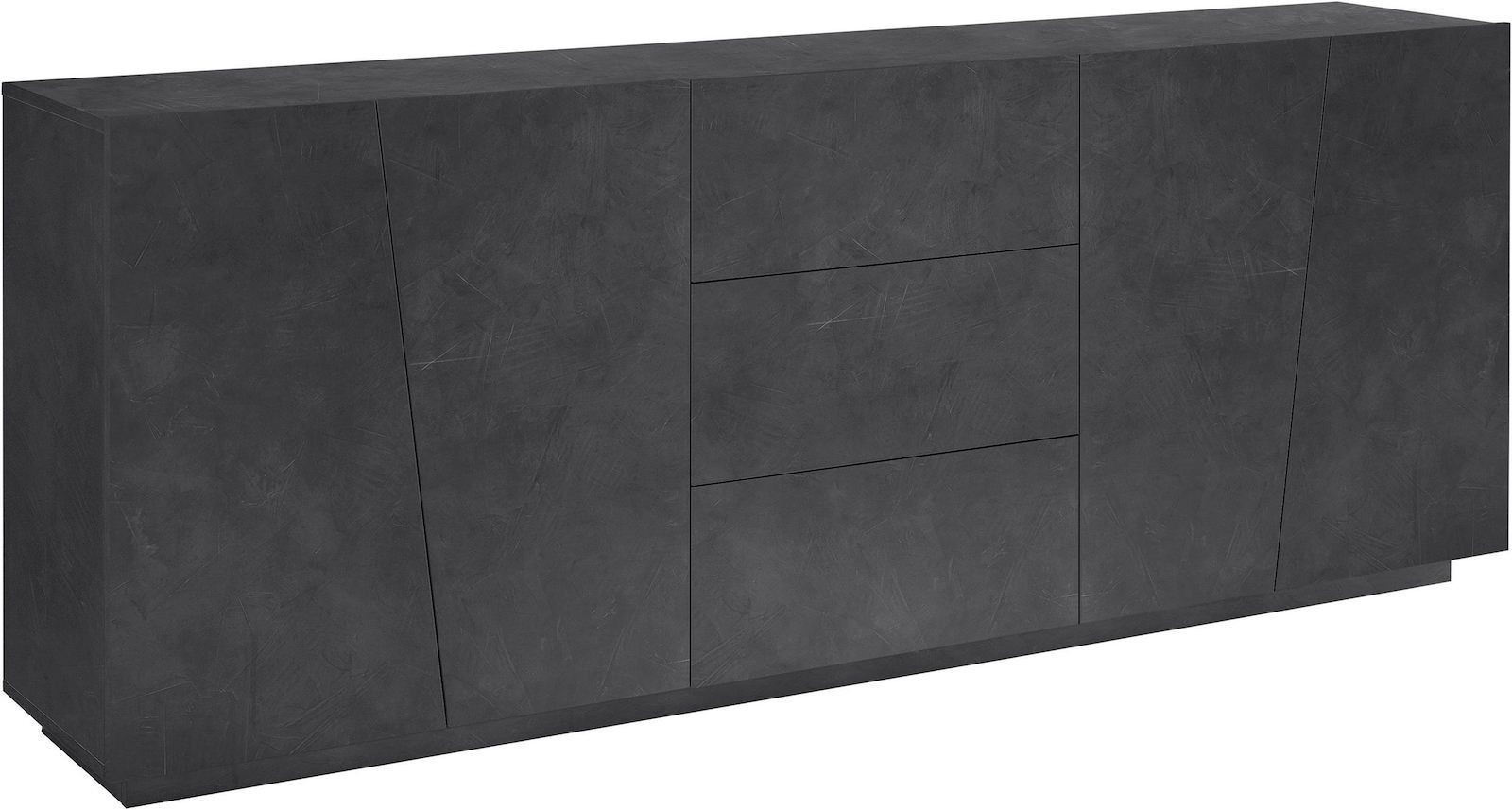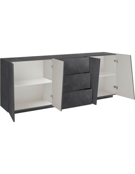 Annabel 4A/3C Slate è una credenza moderna dal design lineare e raffinato, perfetta per completare con eleganza la zona living o la cucina. Realizzata in legno MDF con finitura Ardesia, si distingue per la sua tonalità sofisticata e contemporanea, capace di valorizzare qualsiasi ambiente. Dotata di quattro ante e tre cassetti, offre ampio spazio contenitivo per organizzare stoviglie, tessili e accessori mantenendo l’ordine con stile.
