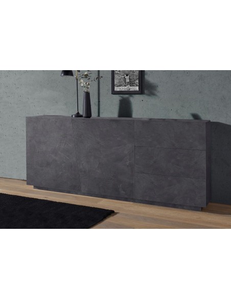 Dotata di due ante e tre cassetti, offre ampi spazi contenitivi per riporre stoviglie, bicchieri e accessori, mantenendo ordine e armonia nella stanza. Prodotta interamente in Italia, Annabel 2A/3C Slate rappresenta il perfetto equilibrio tra design moderno, funzionalità e qualità artigianale Made in Italy, pensata per chi ama un arredamento sobrio ma ricercato.