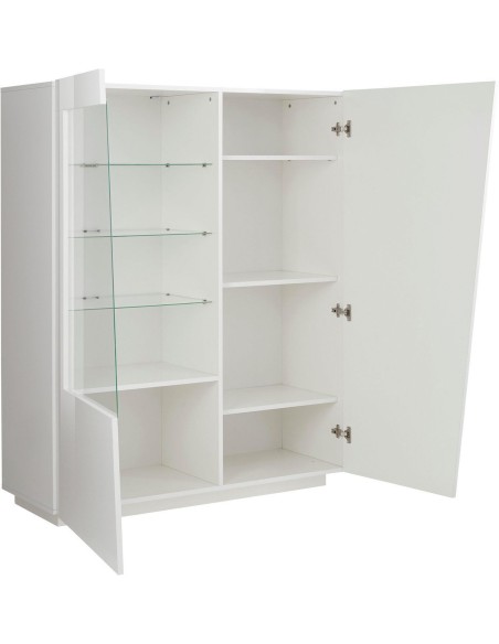 Annabel White è una vetrina soggiorno moderna ed elegante, perfetta per valorizzare il tuo living con un tocco di stile contemporaneo. Realizzata in legno MDF laccato bianco lucido, dona luminosità e armonia agli ambienti, adattandosi facilmente a diversi stili d’arredo.