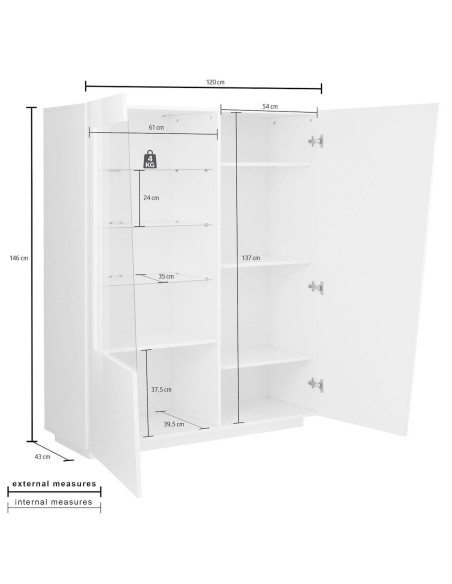 Misure (larghezza x profondità x altezza): L120 x P43 x H146 cm