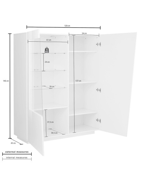 Misure (larghezza x profondità x altezza): L120 x P43 x H146 cm