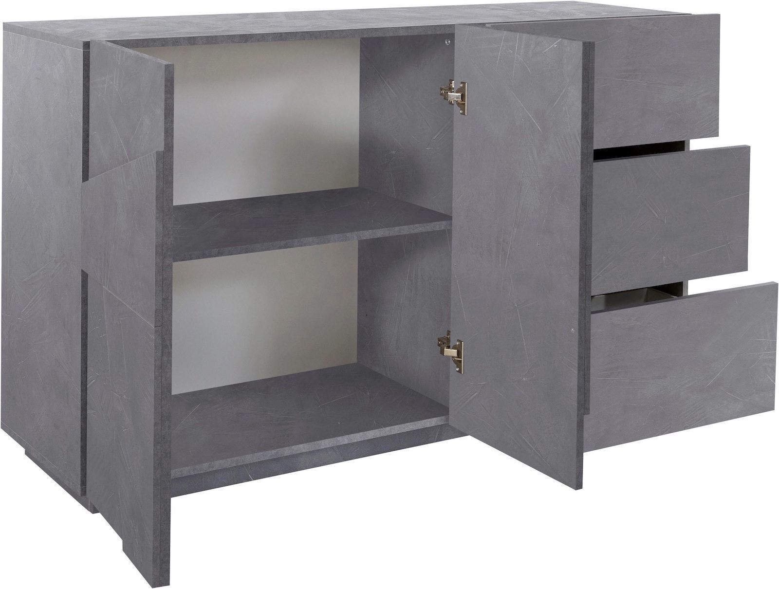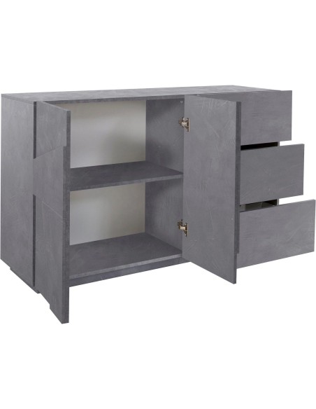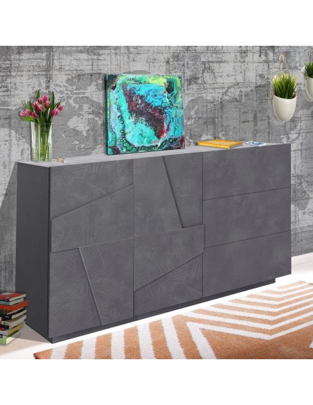 Taylor 2A/3C Slate è una madia moderna dallo stile elegante e contemporaneo, perfetta per arredare il soggiorno o la zona pranzo con gusto e funzionalità. Realizzata in legno MDF di alta qualità con finitura Ardesia, si distingue per il suo effetto materico raffinato, capace di aggiungere carattere e profondità a qualsiasi ambiente.