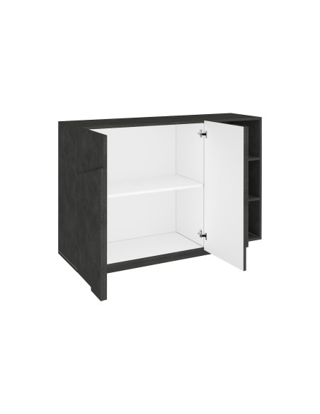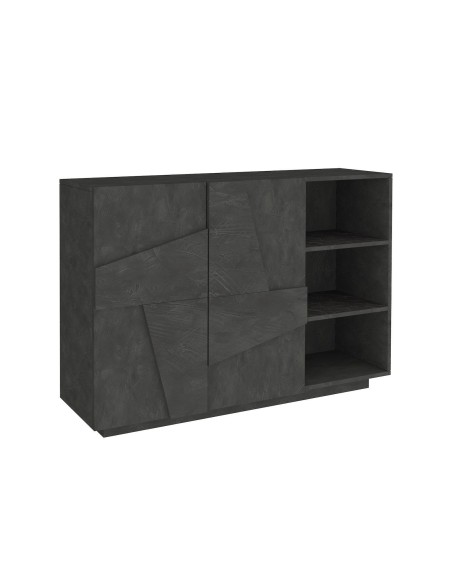 La composizione include due ante con ampi spazi interni e un vano a giorno con tre ripiani, ideale per riporre o mettere in mostra oggetti e accessori decorativi. La produzione 100% Made in Italy garantisce materiali di qualità, cura artigianale e durata nel tempo. Taylor 2A/120 Slate è la scelta perfetta per chi desidera arredare con design contemporaneo, funzionalità e fascino naturale.
