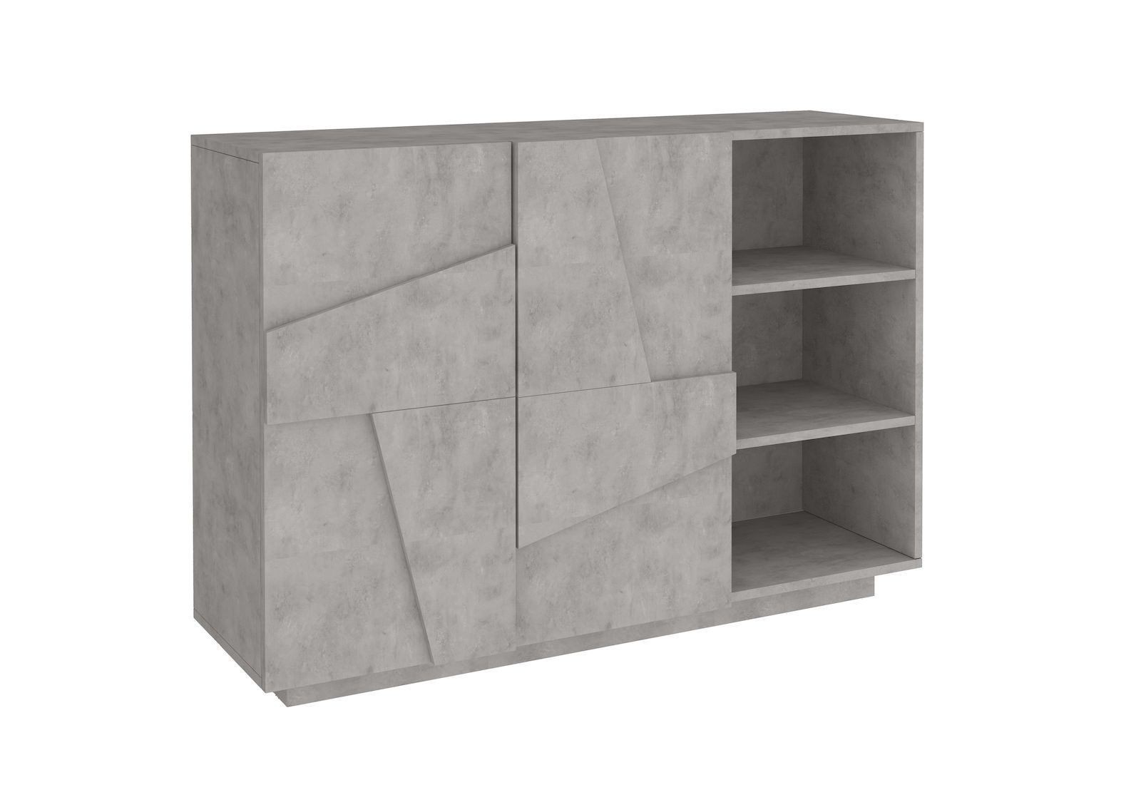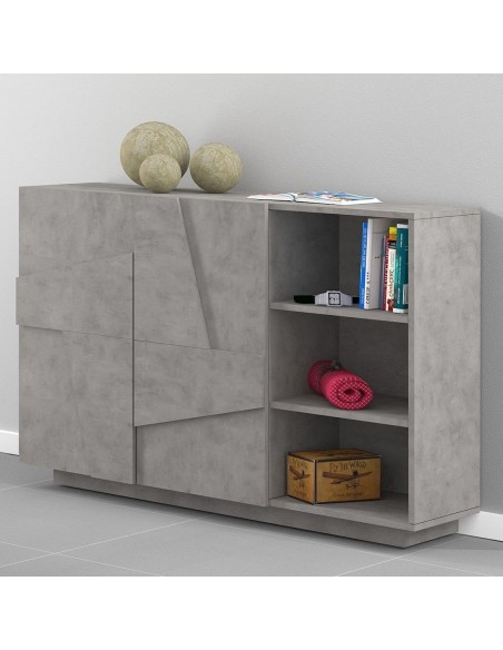 La struttura è composta da due ante laterali con ampi vani interni e da un vano a giorno con tre ripiani, ideale per esporre libri, soprammobili o oggetti decorativi. La produzione 100% Made in Italy garantisce qualità costruttiva, attenzione ai dettagli e materiali durevoli. Taylor 2A/120 Cement è la scelta perfetta per chi ama un arredamento moderno, pratico e dal carattere deciso, espressione autentica del design italiano.