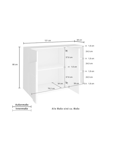 Misure (larghezza x profondità x altezza): L121 x P38 x H86 cm