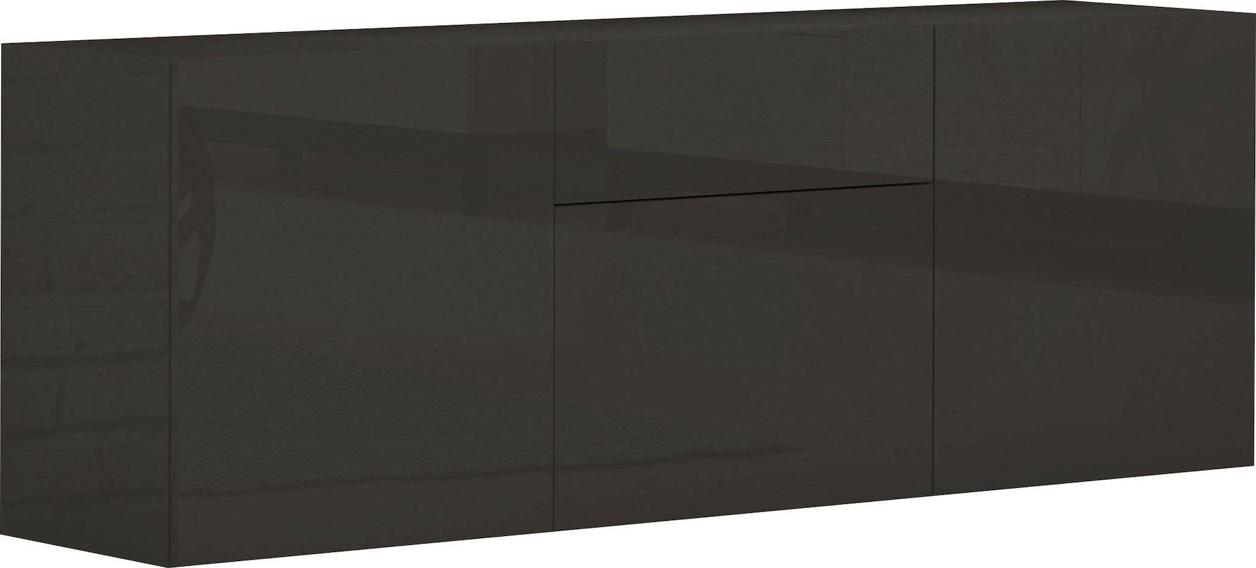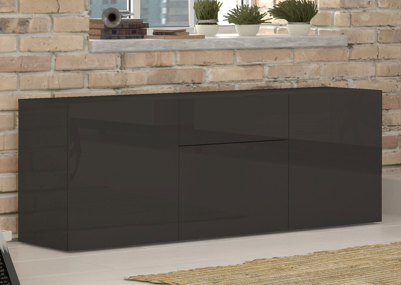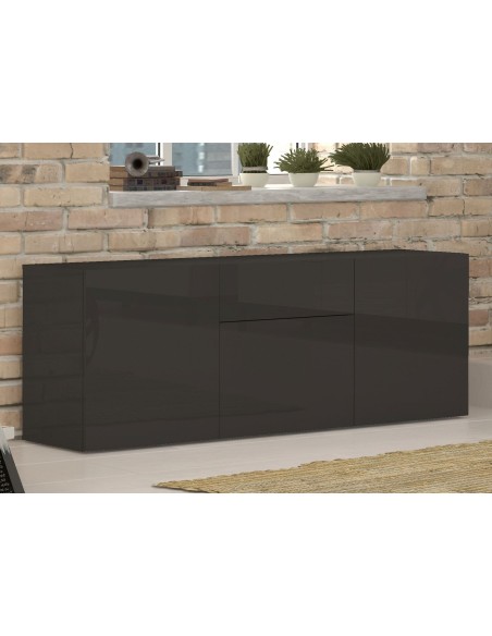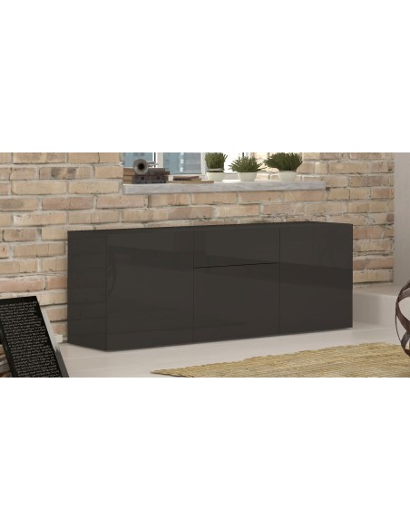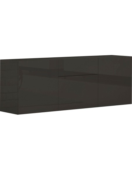 Teodor 3A/1C Anthrax è una madia porta TV moderna dal design elegante e funzionale, ideale per arredare il soggiorno con uno stile contemporaneo. Realizzata in legno MDF di alta qualità con finitura antracite laccato lucido, si distingue per la sua solidità e per le linee pulite che valorizzano qualsiasi ambiente living.