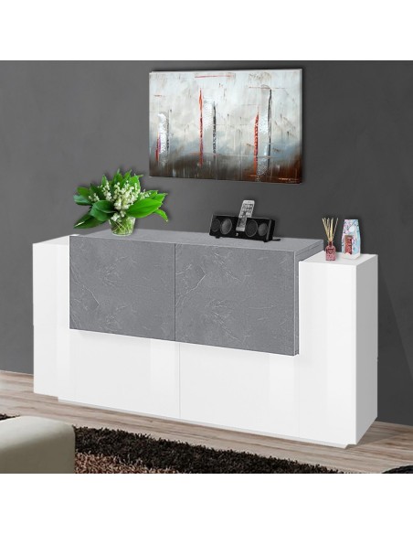 Lukas 2A/2A WS è una madia moderna di design dal fascino elegante e contemporaneo, perfetta per arredare con stile la zona living o la cucina. Realizzata in legno MDF di alta qualità, si distingue per la sua raffinata finitura bicolore bianco laccato lucido / ardesia, che dona carattere e luminosità all’ambiente.