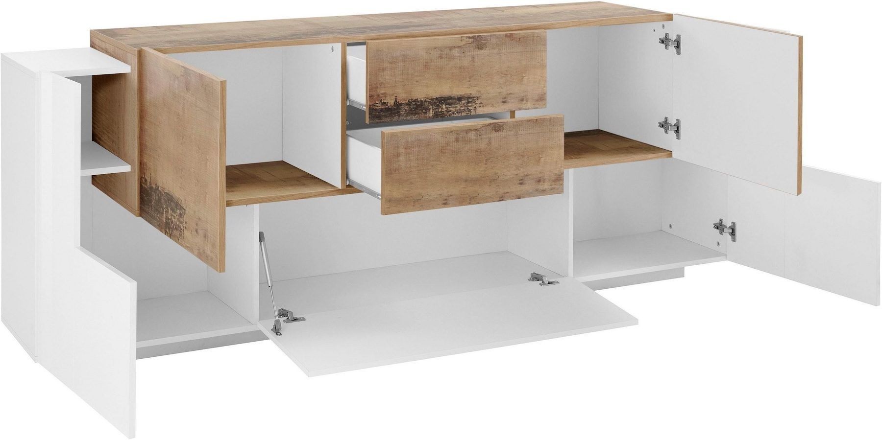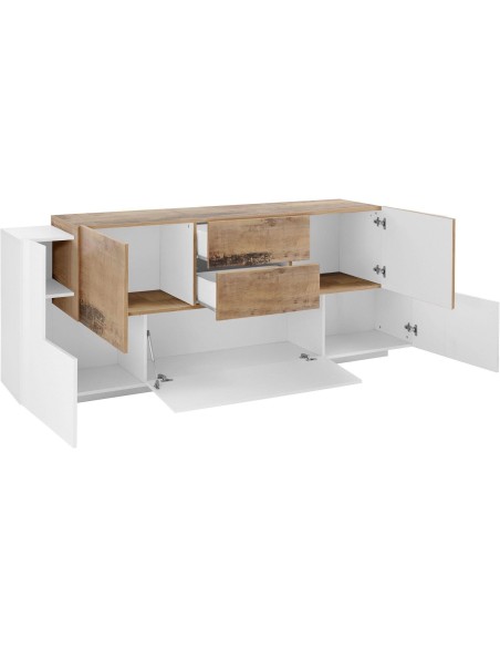La credenza moderna Lukas 3A/2A/2C WM è un complemento d’arredo versatile ed elegante, ideale per ambienti dal gusto contemporaneo. Realizzata in pannelli MDF resistenti, si distingue per l’equilibrata combinazione di bianco laccato lucido e acero pereira, un abbinamento che dona luminosità e calore all’ambiente.