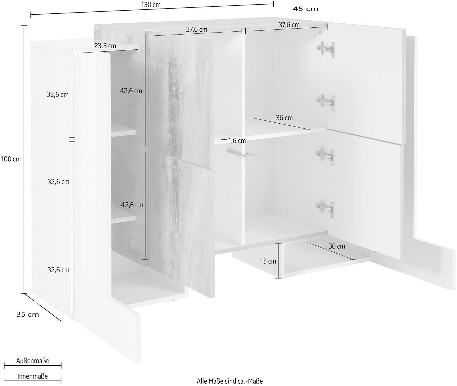 Misure (larghezza x profondità x altezza): L130 x P35/45 x H100 cm