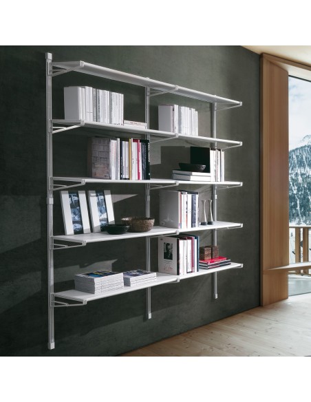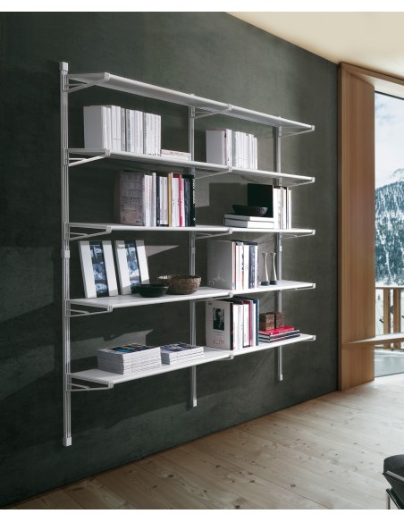 La struttura modulare consente di ampliare facilmente la composizione, aggiungendo montanti o ripiani in base alle proprie esigenze. 📏 Dimensioni: L196,5 x P37,5 x H196 cm. Disponibile nella finitura Bianco Opaco, si distingue per eleganza e robustezza. Un prodotto 100% Made in Italy, frutto di oltre 60 anni di esperienza nella produzione di mobili di design per la casa e l’ufficio.